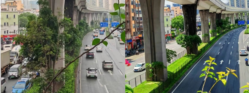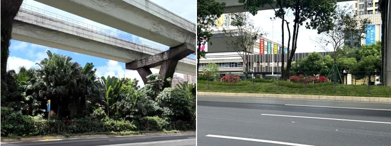 龙岗大道作为深圳东部枢纽的“大动脉”,在龙岗区的产业布局中占据着举足轻重的战略地位。团队历时三个月,将“灌、改、造”结合,见缝插针增“绿量”、以质换量提“绿质”,对龙岗大道两侧、中间及大芬、木棉湾重要节点进行全方位优化升级,共计修剪、补植绿植超20000棵,提升面积达23260平方米,成为龙岗区第一个完成城市主干道绿美升级的城市管家项目,为城市增添了一道亮丽的风景线。